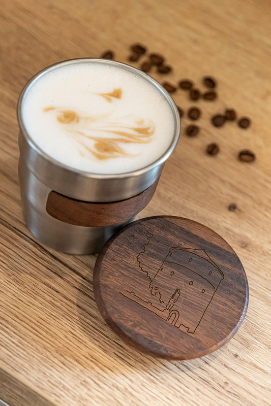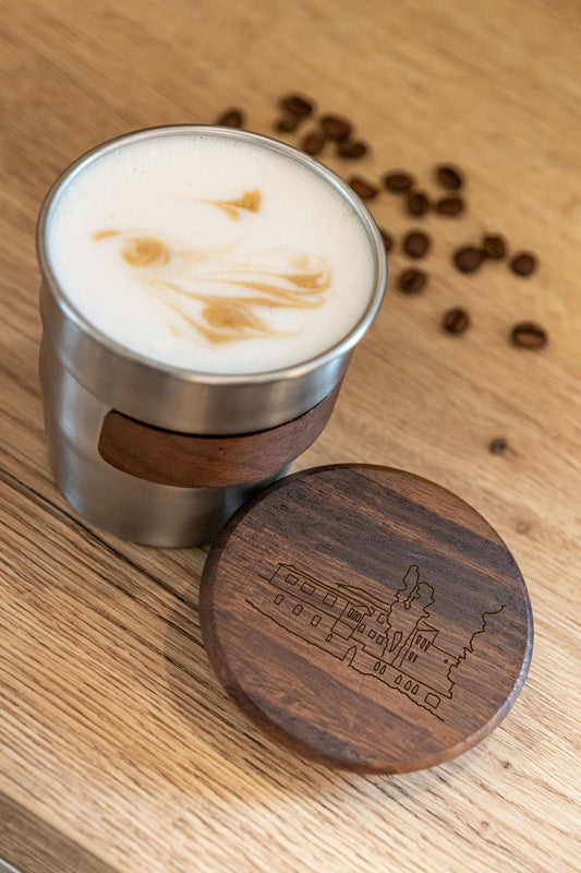 Doppelwandiges Teeglas mit Holzdeckel - Juramuseum -