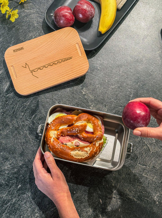 Doppelwandiges Teeglas mit Holzdeckel - Radweg -