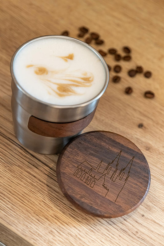 Doppelwandiges Teeglas mit Holzdeckel - Freisinger Dom -